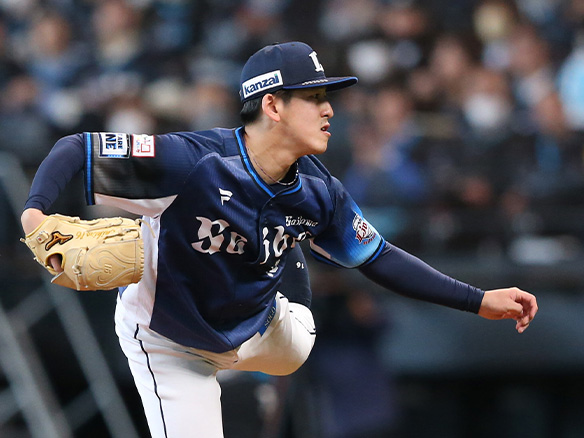 投手 加藤貴 2番 外崎 空三振 内角低めのカットボールを空振り三振 1アウト |