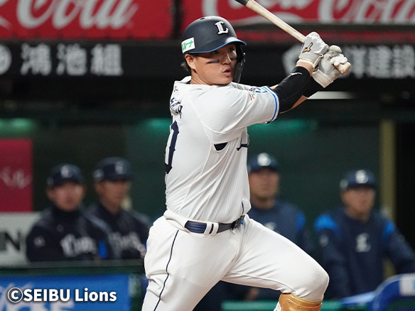 3番 外崎 左2 外角のスライダーをレフトへ打ってツーベース 2塁 |