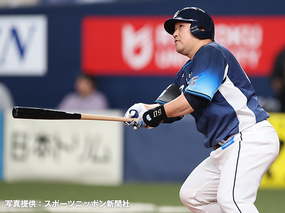 3番 中村剛 左本 カウント0-1からレフトスタンドへホームラン! オ3-1西 ![]() 3