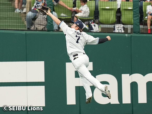 6番 外崎 中飛 ランナー1塁 ど真ん中のストレートを打つもセンターフライ 2アウト |