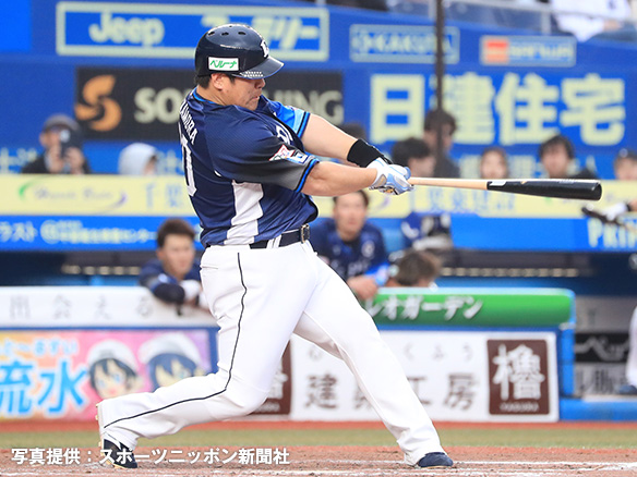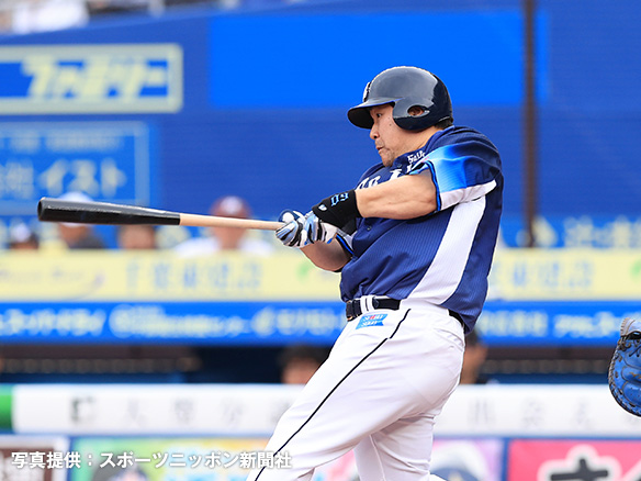 4番 中村剛 右2 内角のフォークをライトへ打ってツーベース 2塁 |