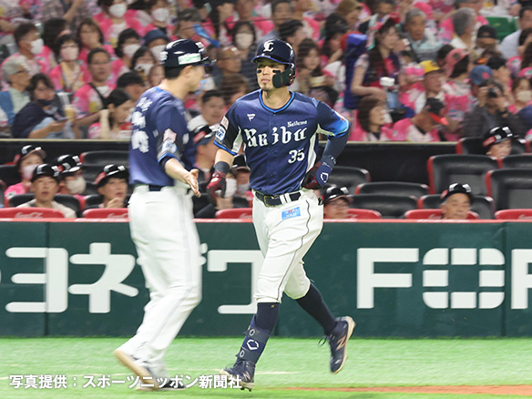 3番 外崎 四球 フォアボールを選ぶ 1塁 |