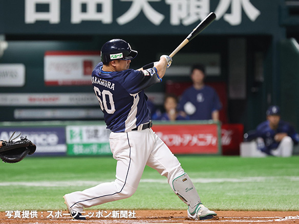4番 中村剛 左安 高めのストレートをレフトへ打ってヒット 1塁 |