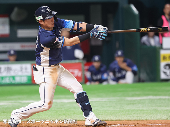 9番 岸 中安 低めのフォークをセンターへ打ってヒット 1塁 |