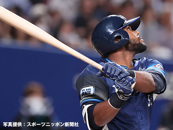 3番 外崎 左安 ど真ん中のフォークをレフトへ打ってヒット 1塁 |