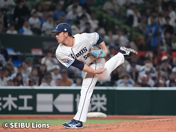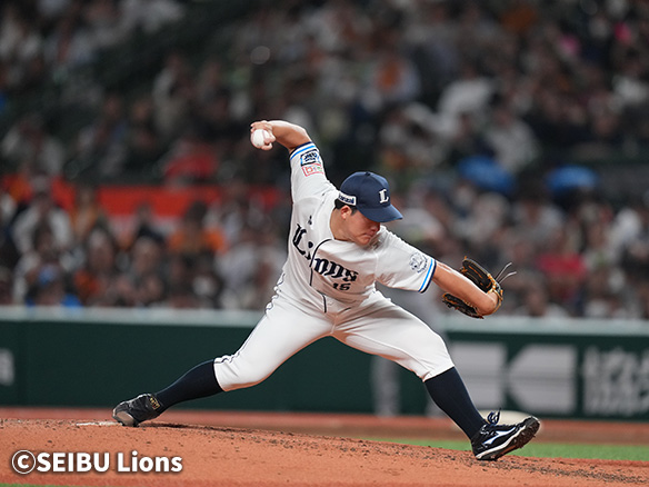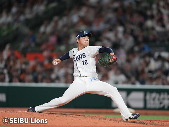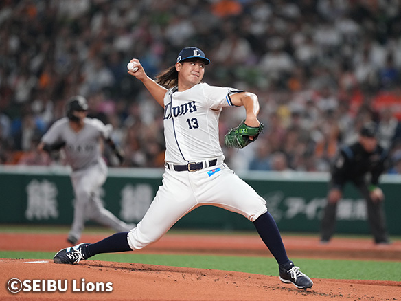 投手 高橋光成 6番 大城卓 空三振 外角のストレートを空振り三振 1アウト |