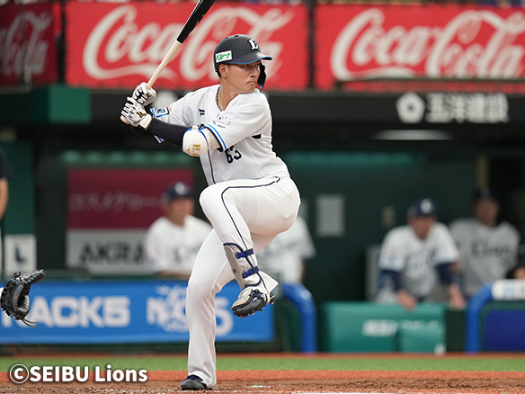 投手 高橋光成 9番 森敬 左安 外角高めのストレートをレフトへ打ってヒット |
