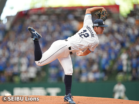 投手 渡邉 3番 オースティン 見三振 外角低めのストレートを見逃し三振 1アウト |