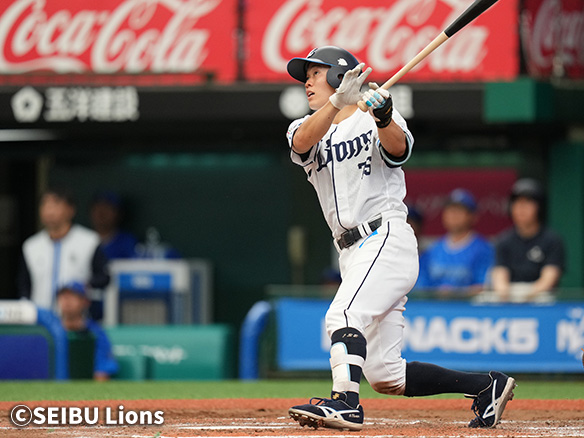 9番 栗山 左安 ランナー1塁 内角低めのストレートをレフトへ打ってヒット 1,3塁 |