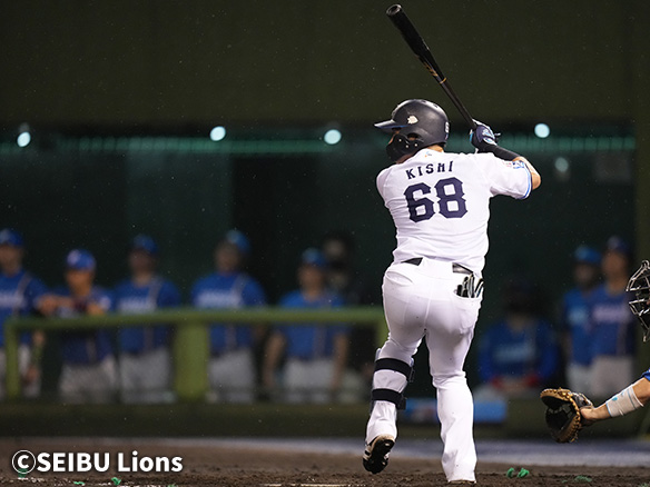 4番 岸 右安 外角のスライダーをライトへ打ってヒット 1塁 |