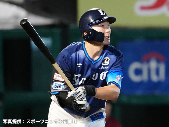 3番 外崎 右飛 外角のストレートを打つもライトフライ 2アウト |