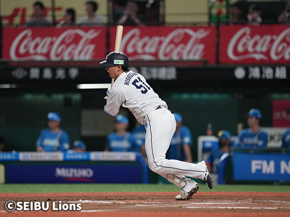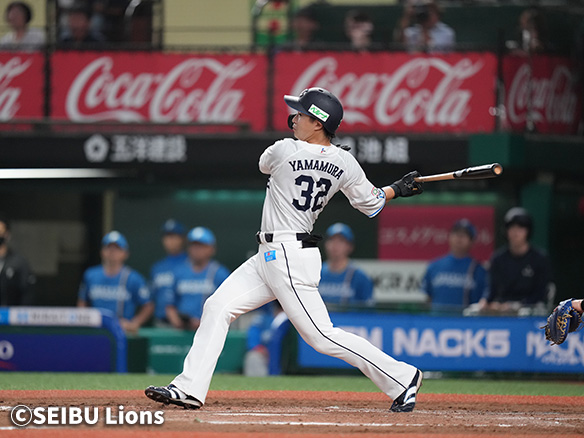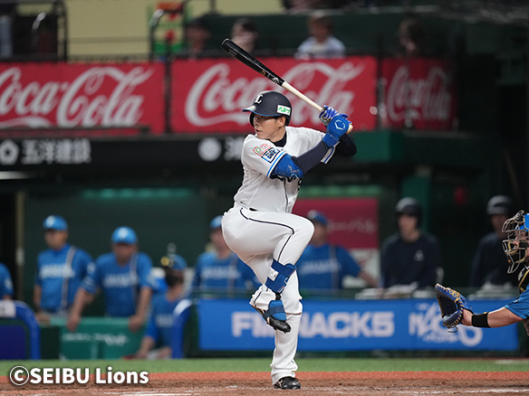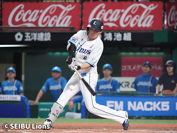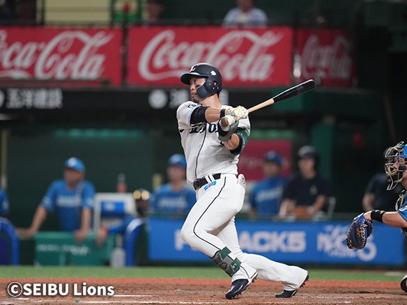 3番 外崎 中安 外角高めのシュートをセンターへ打ってヒット 1塁 |