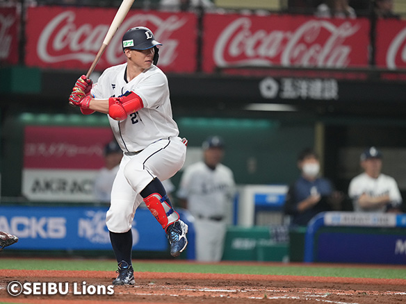 1番 源田 左安 外角のスライダーをレフトへ打ってヒット 1塁 |