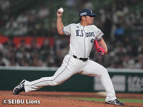 8番 外崎 空三振 外角低めのチェンジアップを空振り三振 1アウト |