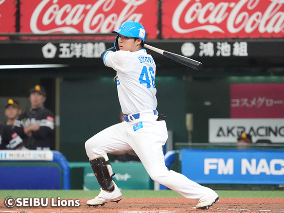 2番 鈴木 左安 高めのスライダーをレフトへ打ってヒット 1塁 |