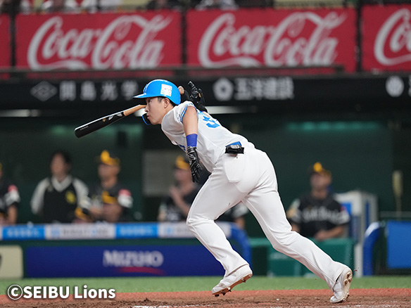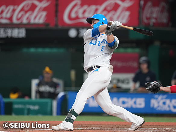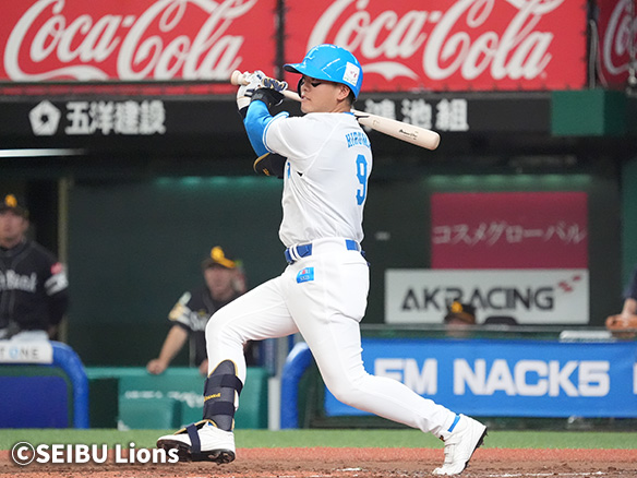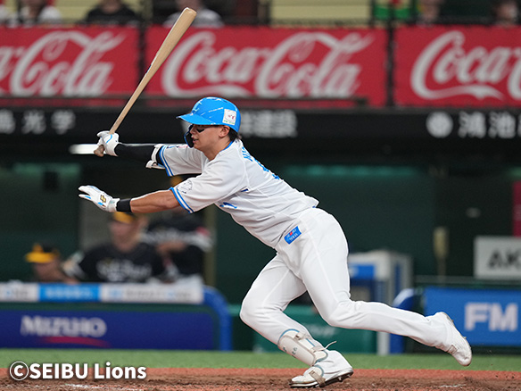 6番 外崎 右安 外角低めのチェンジアップをライトへ打ってヒット 1塁 |