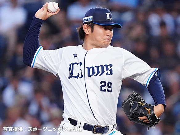 投手 メルセデス 5番 外崎 遊安 外角低めのストレートをショートへ打ってヒット |
