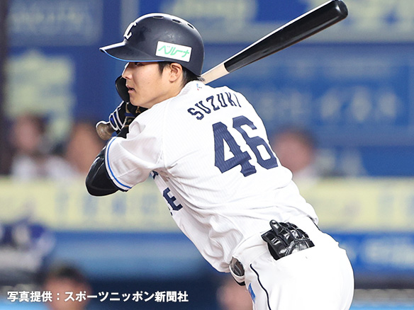 8番 鈴木 中安 ランナー2塁 159キロの低めのストレートをセンターへタイムリーヒット! 2塁 ロ2-1西 ![]() 2