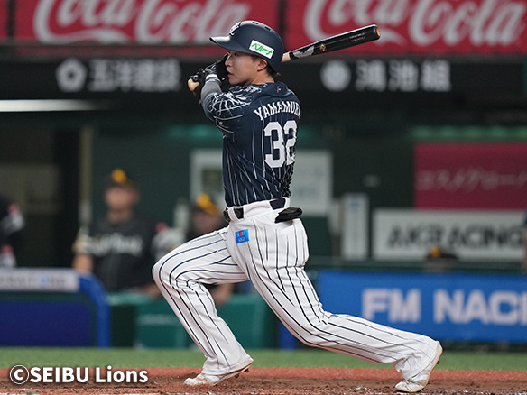 投手 渡邉 4番 山川 左安 外角のカットボールをレフトへ打ってヒット |