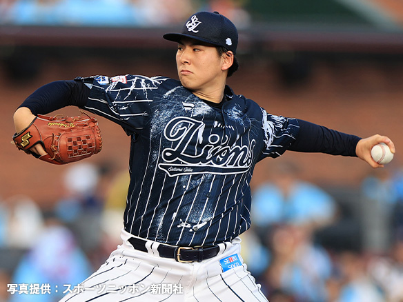 3番 外崎 空三振 外角低めのスライダーを空振り三振 3アウトチェンジ |