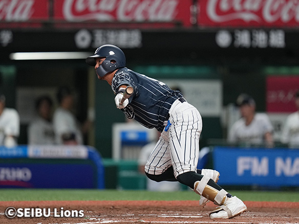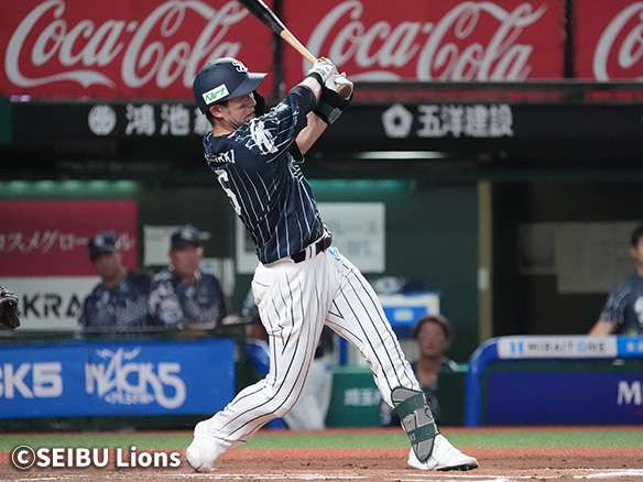 5番 外崎 左安 外角のストレートをレフトへ打ってヒット 1塁 |