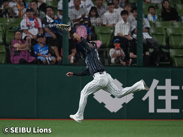 9番 渡部 左邪飛 ファウルフライを蛭間(左)が捕球してバッターアウト 1アウト |