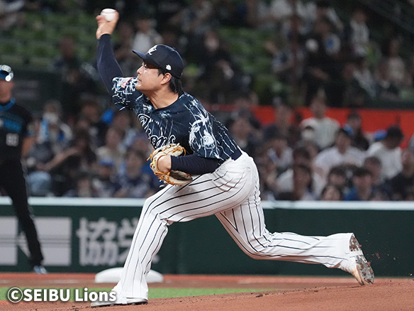 投手 加藤貴 2番 源田 左飛 高めのスライダーを打つもレフトフライ 1アウト |