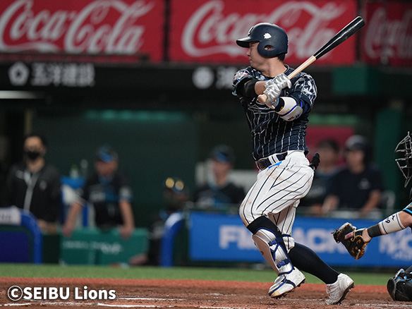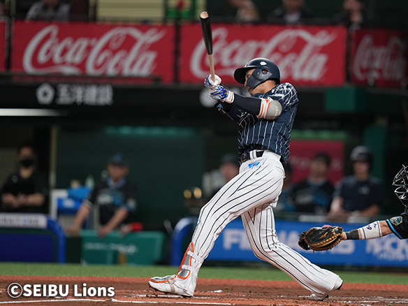2番 源田 左安 高めのストレートをレフトへ打ってヒット 1塁 |