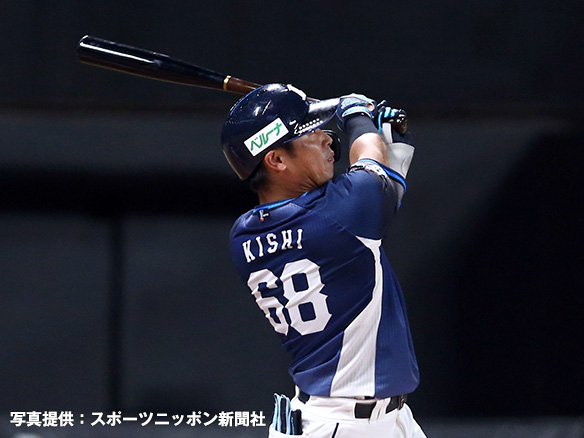 7番 岸 左本 カウント2-1からレフトスタンドへホームラン! 日2-1西 ![]() 2