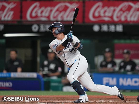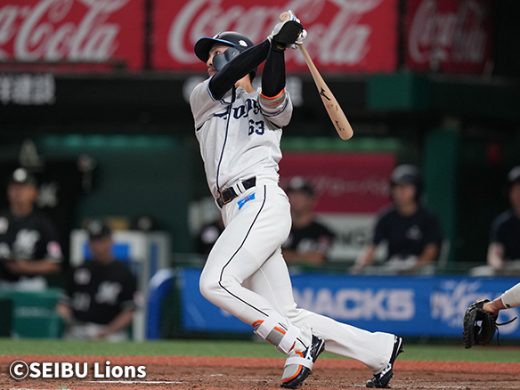 5番 外崎 左2 外角のカーブをレフトへ打ってツーベース 2塁 |