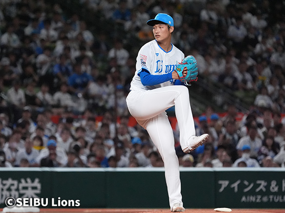 1番 源田 一ゴロ 内角のスライダーを打つもファーストゴロ 1アウト |