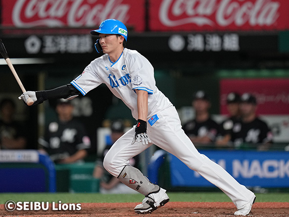 1番 源田 一安 内角低めのフォークをファーストへ打ってヒット 1塁 |