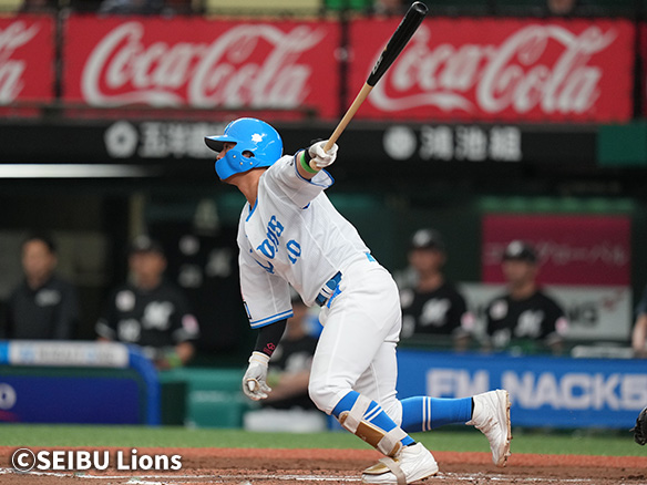 5番 外崎 中飛 外角のスライダーを打つもセンターフライ 2アウト  |