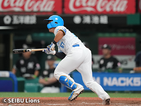 5番 外崎 右飛 ランナー1塁 外角のツーシームを打つもライトフライ 2アウト  |