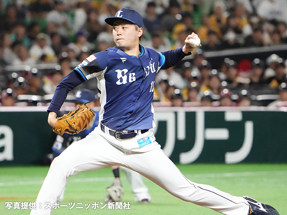 投手 隅田 4番 山川 空三振 外角低めのフォークを空振り三振 1アウト |