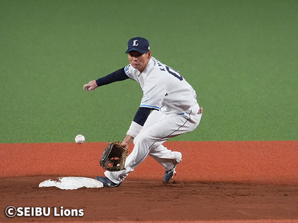 6番 外崎 二ゴロ 外角低めのフォークを打つもセカンドゴロ 2アウト  |