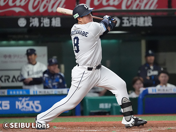 | 5番 渡部聖 左安 外角のスライダーをレフトへ打ってヒット 1塁 | |