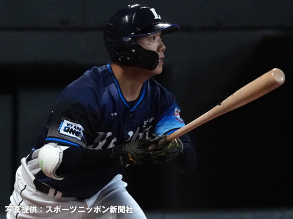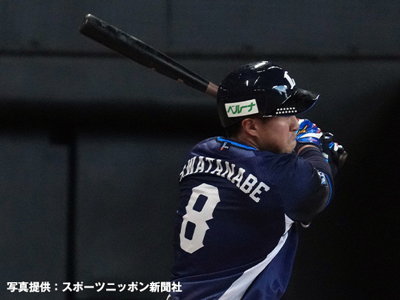 3番 渡部聖 左安 外角低めのフォークをレフトへ打ってヒット 1塁 |