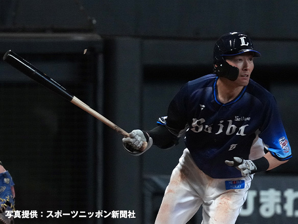 5番 外崎 右安 外角低めのフォークをライトへ打ってヒット 1塁 |