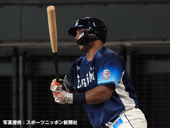 5番 外崎 右安 内角のフォークをライトへ打ってヒット 1塁 |