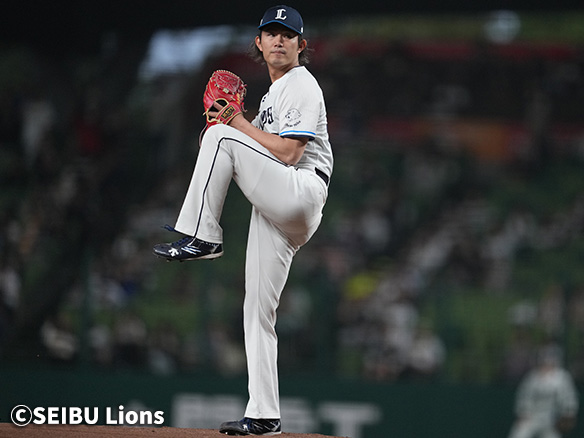投手 九里 7番 古賀悠 左飛 高めのカットボールを打つもレフトフライ 1アウト |