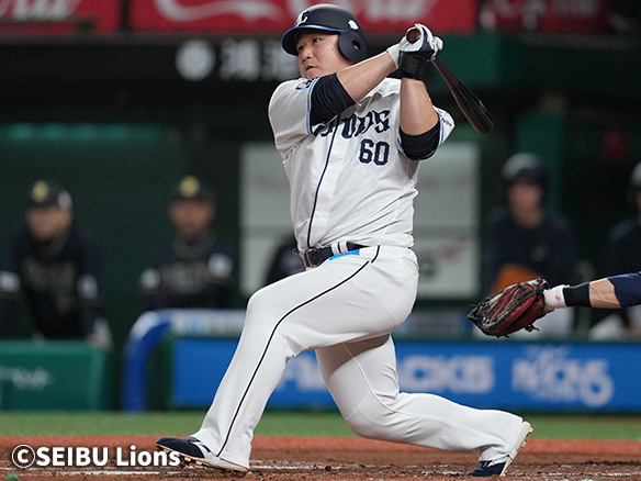 5番 外崎 左安 ランナー1塁 内角のチェンジアップをレフトへ打ってヒット 1,2塁 |
