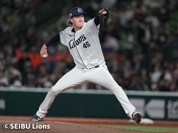 4番 ネビン 空三振 低めのフォークを空振り三振 2アウト |