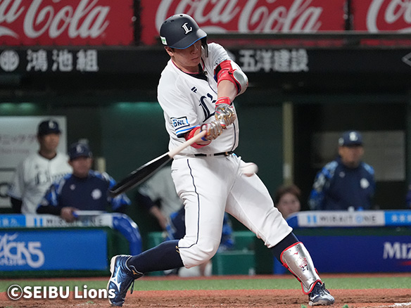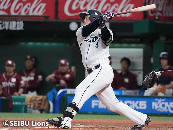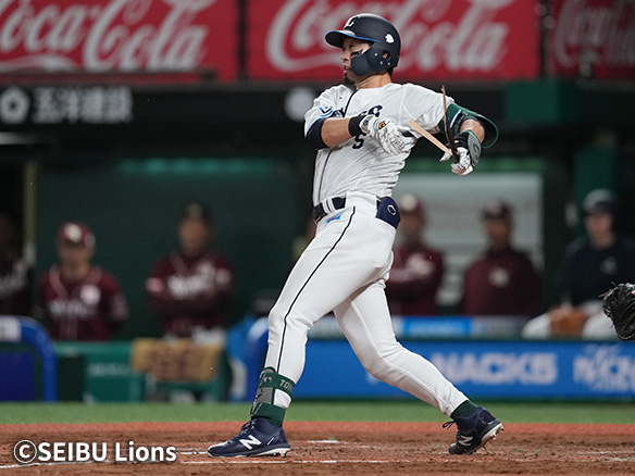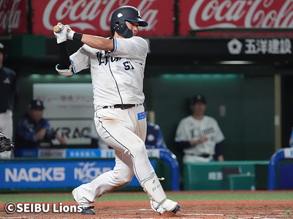 6番 外崎 三安 内角高めのフォークをサードへ打ってヒット 1塁 |