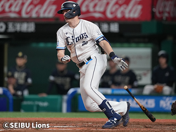 | 1アウト | 投手 エスピノーザ 6番 外崎 中飛 低めのツーシームを打つもセンターフライ 1アウト |