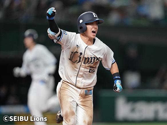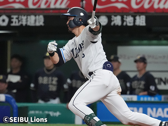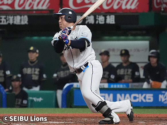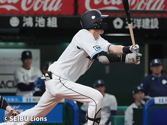 | 6番 外崎 左安 低めのカーブをレフトへ打ってヒット 1塁 | |