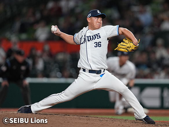 | 1アウト | 8番 古賀悠 空三振 外角低めのカットボールを空振り三振 1アウト | |