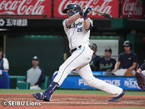 | 5番 外崎 中安 満塁 外角低めのスライダーをセンターへタイムリーヒット! 1,3塁 西3-0ヤ  3 0  | |