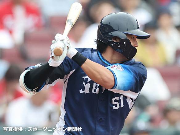 | 9番 外崎 中安 外角低めのチェンジアップをセンターへ打ってヒット 1塁 | |