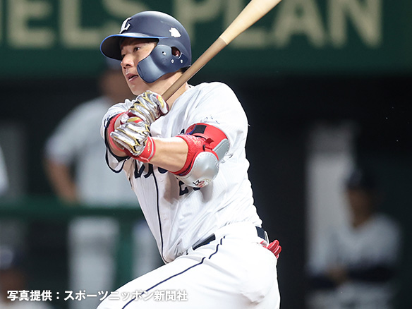 | 6番 外崎 右2 ランナー1塁 外角のストレートをライトへタイムリーツーベース! 2塁 西1-2オ  1 2  | |